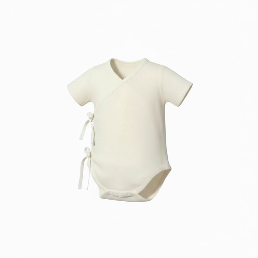 採用100%日本CURETEX® 蕉麻紙紗製成。本款嬰兒連身衣設計貼心,褲襠處設有鈕扣,方便更換尿布,提升育兒效率與便利性。