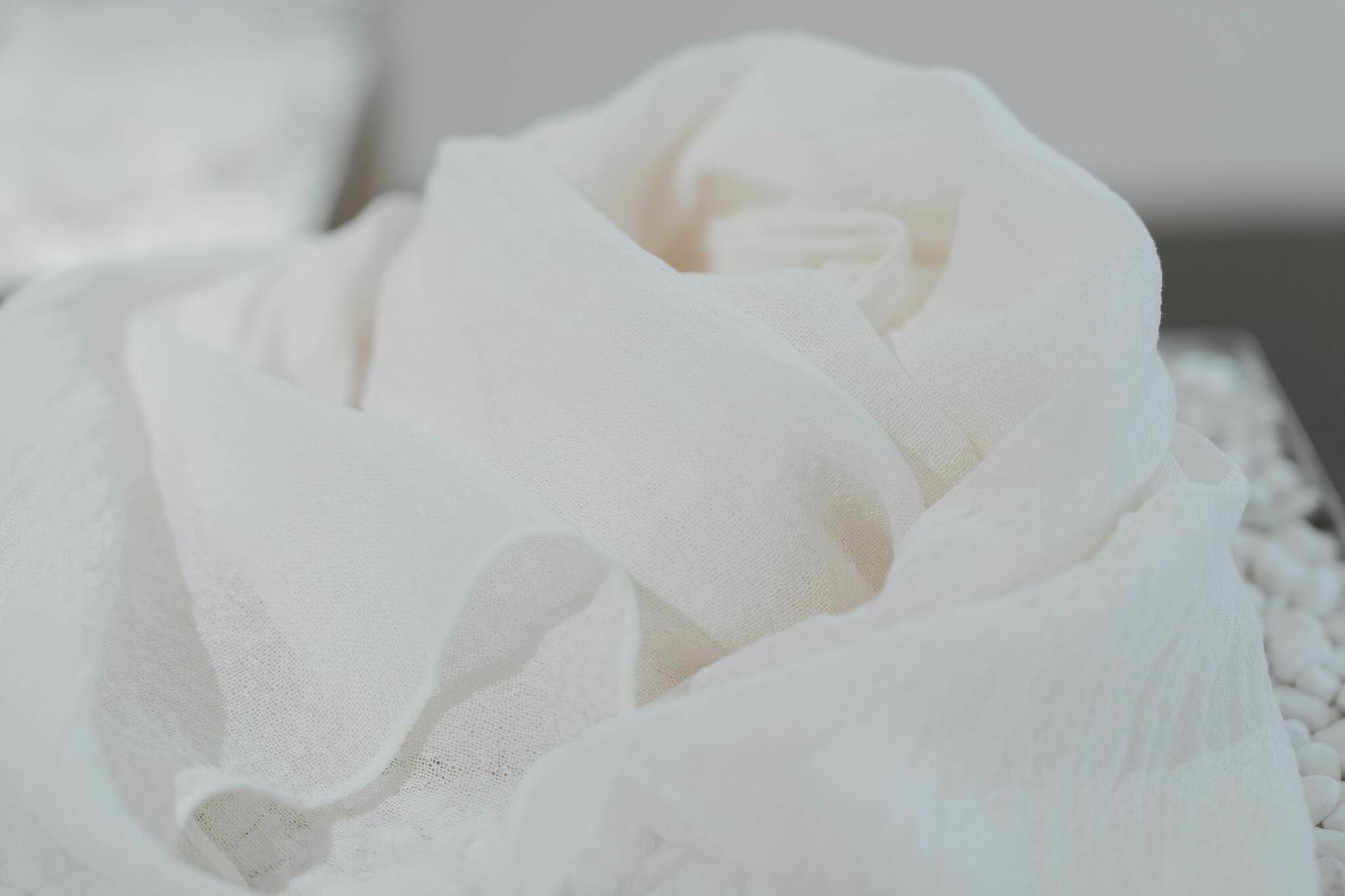 採用100%日本CURETEX® 蕉麻紙紗製成。在乾燥季節或長時間配戴口罩感到不適時,本款晚安紗巾能提供理想的替代方案。