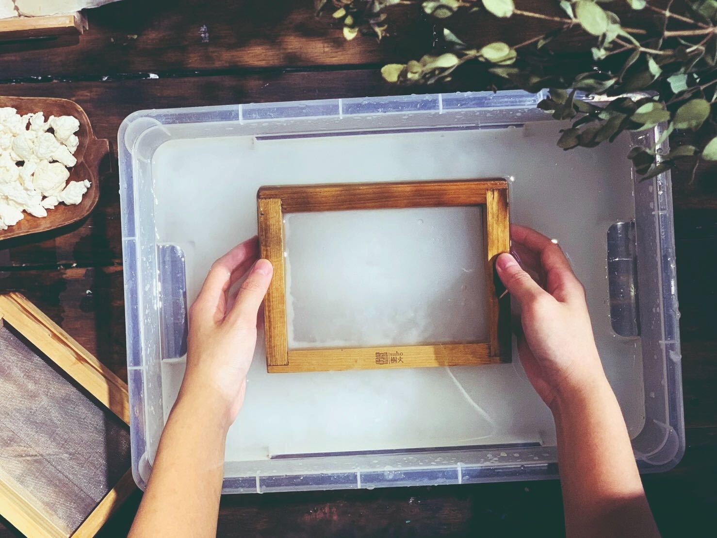 4.紙漿與水的比例決定依紙張成品的厚薄度,可依個人需求與喜好自行調配。