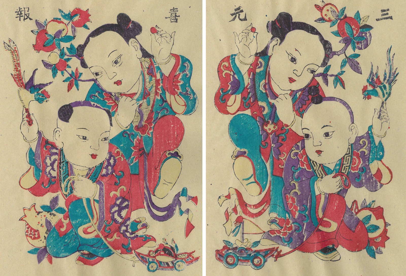 濰 坊 年 畫 「喜 報 三 元 」 (對組)